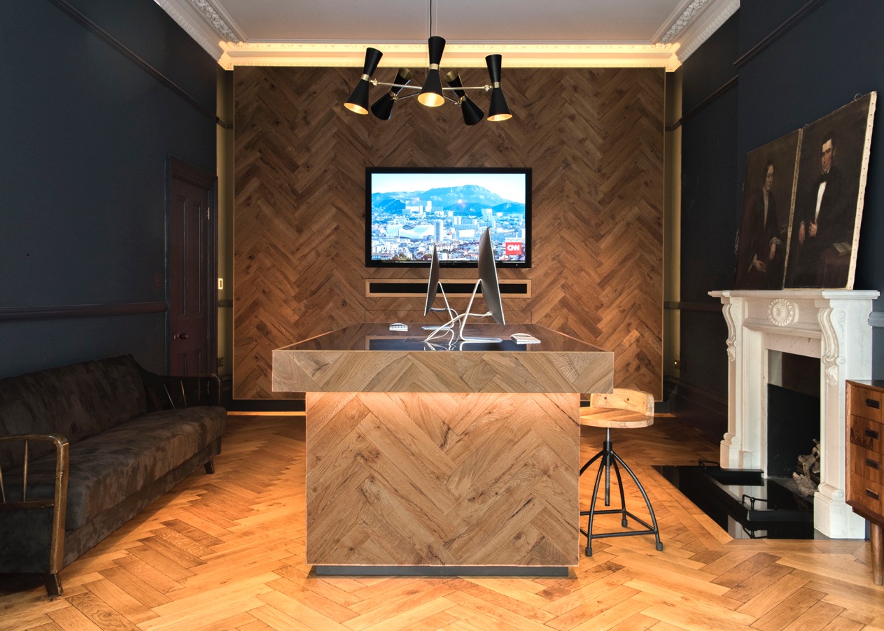 In the concept design phase, we came up with a design scheme that was based around a waverly oak Herringbone clad feature wall and joinery. We worked alongside a specialist joinery company to create the bespoke Herringbone pieces. To create a textured finish to the Herringbone, we specified the material should be reclaimed floor joists, planed to varying thicknesses. Each Herringbone piece was applied to the joinery and feature wall in a random order to create the desired textured and rustic aesthetic. The result is a truly bespoke room which both the client and their kids love.